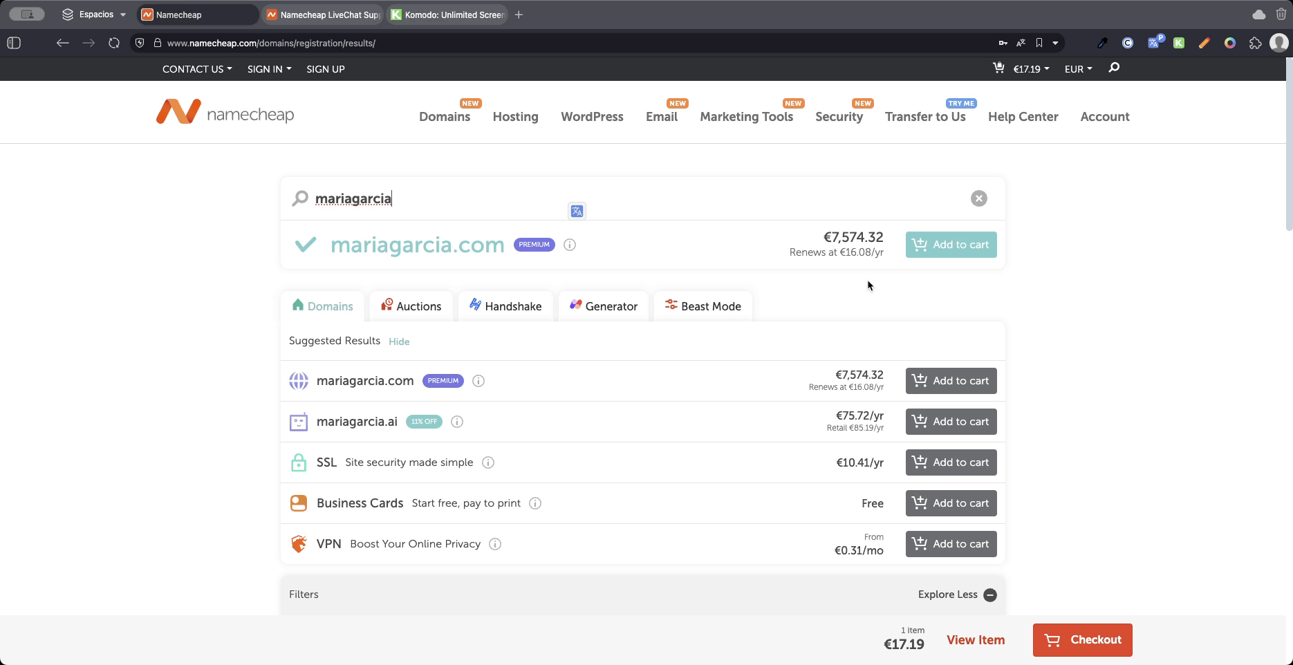 Explorar combinaciones: Prueba diferentes combinaciones de nombres y extensiones para encontrar opciones más económicas.